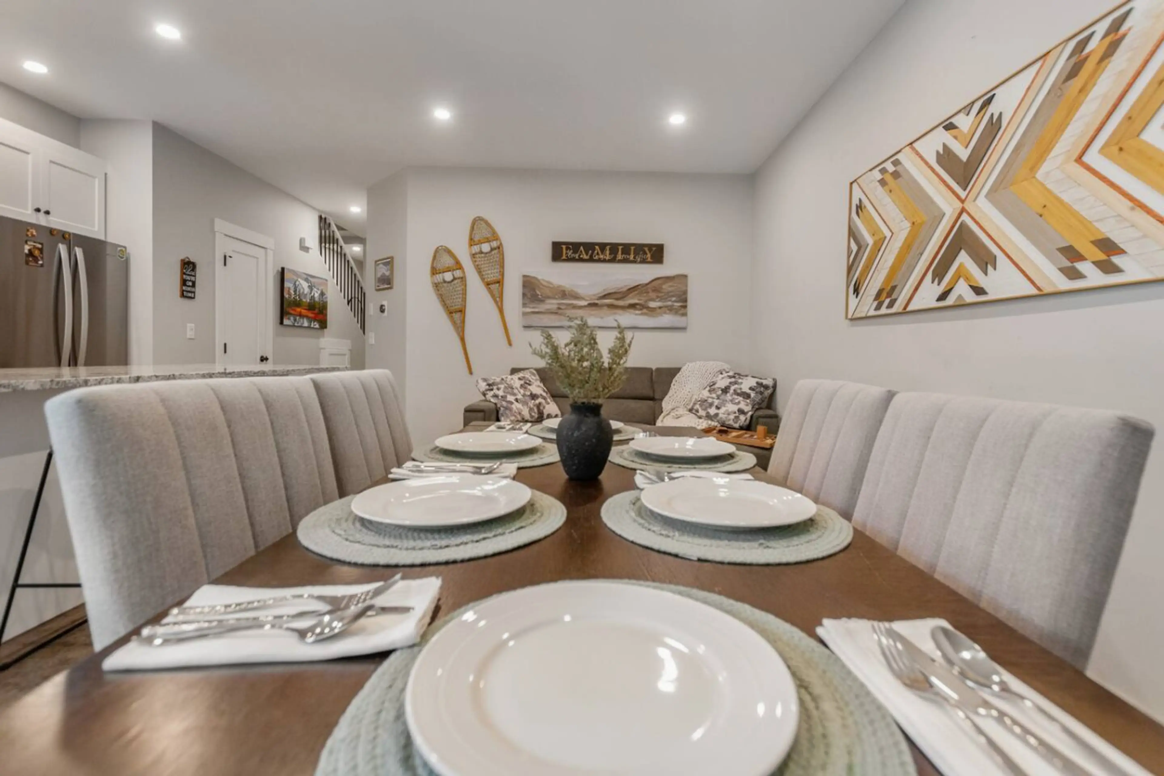 New Bright Open and Spacious Townhouse with a Hot Tub! True Ski-in Ski-out Location the perfect place to Escape to the Mountains! This beautiful townhouse is set up to host 8 comfortably. It features a new open concept living space with a full kitchen, bar seating, dining area, living room, 3 full...