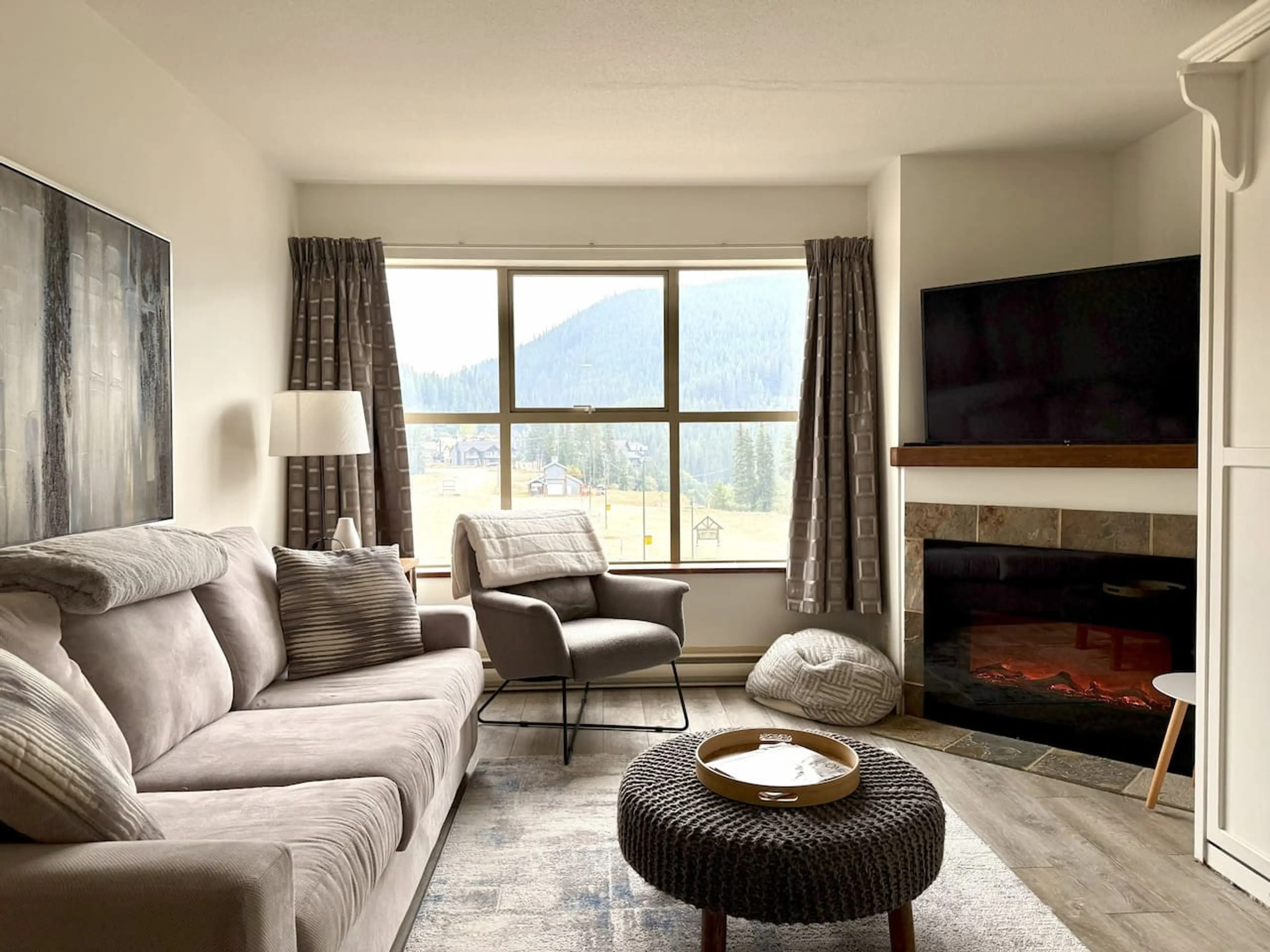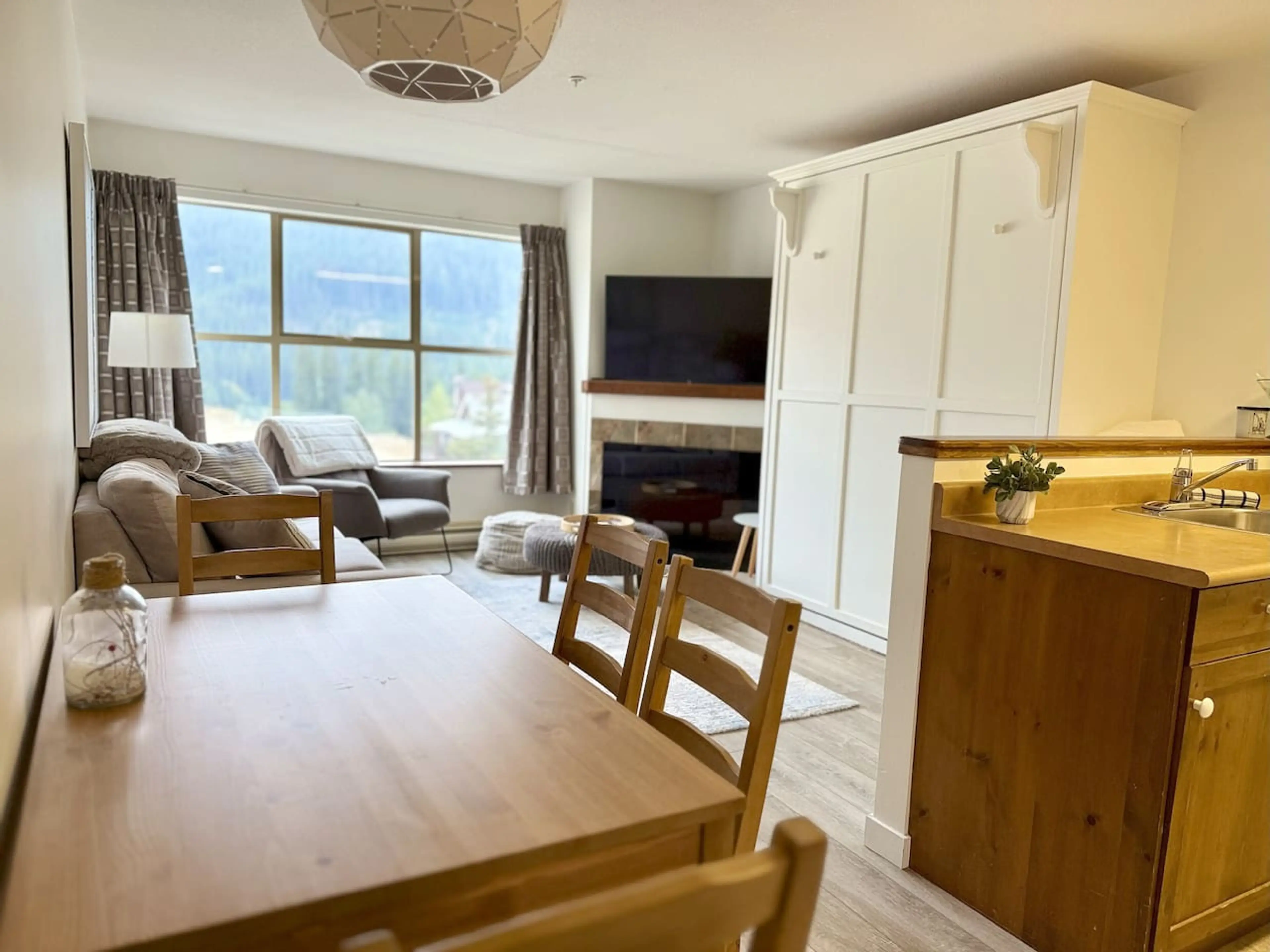Keep it simple at this peaceful and centrally located place. The most Desirable Location at The Resort! A true Ski-in Ski-out Experience right in The Village! Located at Apex Mountain Inn, this private studio has a beautiful living space with fireplace, murphy bed, full kitchen, bathroom, TV, cof...